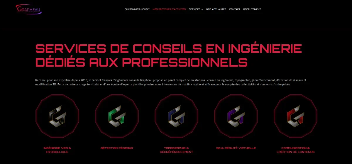 Grapheau.fr est le site vitrine officiel d’un cabinet d’ingénieurs-conseils spécialisé en ingénierie, topographie et modélisation 3D. Ce projet avait pour objectif de concevoir une plateforme web professionnelle permettant de valoriser l’expertise du cabinet tout en facilitant la prise de contact avec ses clients. Le site a été développé sous WordPress avec le constructeur Divi, en mettant l’accent sur une structure claire, une navigation intuitive et une présentation efficace des services. Une attention particulière a été portée à l’optimisation SEO afin d’améliorer la visibilité du site sur les moteurs de recherche. Des modules personnalisés et des extensions spécifiques ont été développés pour répondre aux besoins métiers du client, tout en garantissant une autonomie dans la gestion du contenu. Le projet s’inscrit dans une logique de production réelle, avec un site actuellement en ligne et utilisé par le cabinet.